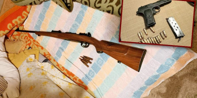 Policija je prilikom pretresa njegove kuće u okolini Rume pronašla pištolj sa okvirom, pušku i ukupno 24 pištoljska i puščana metka.