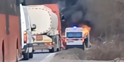 Na snimku koji je objavljen na Instagramu 192 vidi se plamen koji ide i nekoliko metara uvis, ali i vozilo Hitne pomoći.