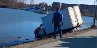 Vozač na sreću u ovoj nezgodi je nepovređen, a srećna je okolnost je da je kamion sleteo na mestu gde je Dunav plitak, pa je hladnjača uz pomoć građevinske mašine ubrzo izvučena na suvo.