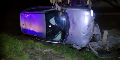Tom prilikom vozilo je udarilo u ogradu pored puta i prevrnulo se na bok.