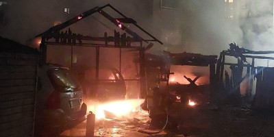 Pet automobila koji su se nalazili u garažama gore, a vatrogascima je otežan prilaz jer su ovi objekti podignuti, kako kažu stanari okolnih zgrada bez dozvole i slabog materijala.