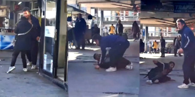 U jednom trenutku, kako se vidi na snimku, napadač pada na beton, ali se ubrzo pridiže i nastavlja da udara muškarca.