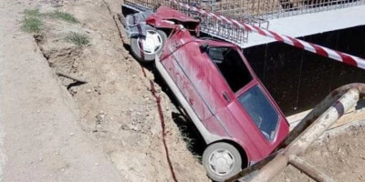 Kao posledica nezgode jedan automobil je sleteo sa puta u zonu gradilišta i završio u rupi.