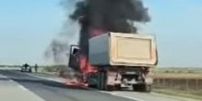 Na društvenim mrežama pojavio se snimak požara na kamionu, koji stoji u zautsavnoj traci dok vatra guta kabinu.