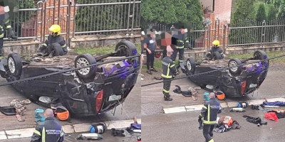 Kako se vidi na slikama objavljenim na Instagram stranici 192, automobil je potpuno uništen i prevrnut na krov.