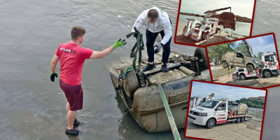 Ispod fotografija izvlačenja automobila autor je napisao: "Ovako izgleda automobil koji je nekoliko meseci proveo u Dunavu. Automobil je upao u reku u januaru, ali je zbog visokog vodostaja tek sada izvučen.