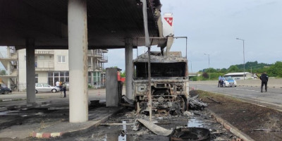 Zbog siline udara parkirani kamion je udario u benzinsku pumu i došlo je do požara u kojem su se zapalila i oba teretnjaka i deo benzinske pumpe.