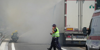 Drugo putničko vozilo koje je učestvovalo u nesreći ostalo je "zaglavljeno" između bandere i prikolice kamiona.