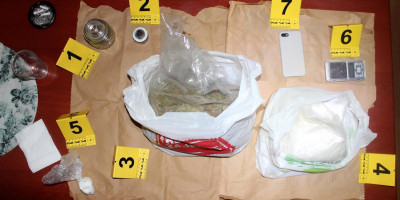 Policija je prilikom pretresa stana i drugih prostorija osumnjičenog pronašla i zaplenila više od 1,5 kilograma amfetamina, oko 582 grama marihuane, oko 27,8 grama kokaina i elektronsku vagicu za precizno merenje, na kojoj se nalaze tragovi opojne droge.