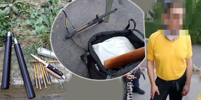 Kod njega u rancu su pronađeni samostrel sa sedam strela, nekoliko noževa i tegla sa topovskim udarom. Istražuju se motivi, lice nije na spisku ekstremista, vrši se pretres stana, njegove izjave su da ga progone mafija i službe i da zato ovo sve nosi sa sobom.