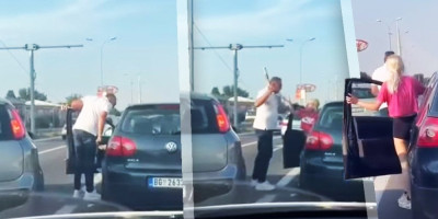 Kako je prikazano, u blizini Ade Ciganlije, dva muškarca su izleteli iz automobila i sa palicom u rukama nasrnuli na devojku koja je vozila automobil.