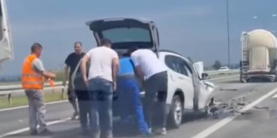 Na društvenim mrežama objavljen je snimak nakon nezgode. Na jednom od njih vidi se potpuno uništeni deo jednog automobila.