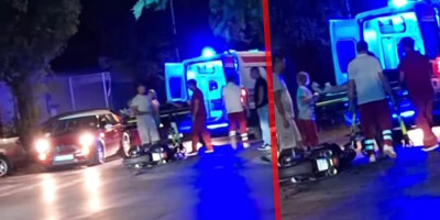 Na društvenim mrežama proširio se snimak sa mesta nezgode na kom se vidi Hitna pomoć kako pomaže vozaču motocikla.