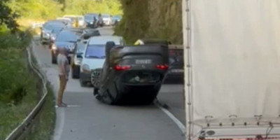 Automobil se iz još neutvrđenih razloga prevrnuo na krov, a kako nezvanično saznajemo, u nesreći nema teže povređenih osoba.