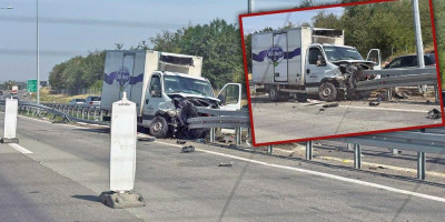 Vozač kamiona za prevoz mleka je iz za sada nepoznatog razloga izgubio kontrolu i velikom brzinom udario u metalnu bankinu koja razdvaja trake autoputa. Koliko je udes bio silovit najbolje pokazuje to što je malo nedostajalo da kamion bukvalno preleti u suprotni smer, ali je bankina probila kabinu i teretnjak se zaustavio.