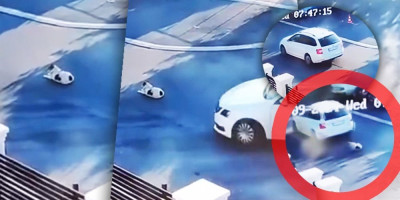 Na snimku koji traje dvadesetak sekundi vidi se pas kako mirno leži na ulici. Međutim u sledećem trenutku preko njega prelazi beli automobil.