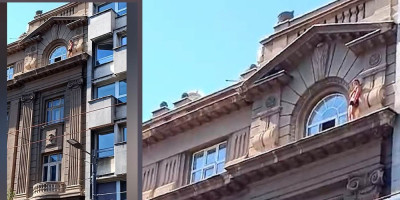 Stoji na prozoru i plače! Ovako je izgledala drama u centru Beograda (FOTO/VIDEO)