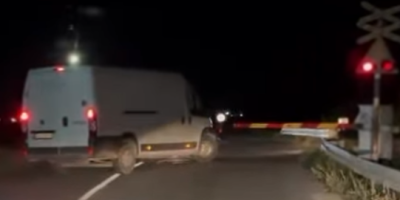 U smrtnoj opasnosti, vozač kombija izbegao spuštenu rampu! Na pružnom prelazu zaigrao na sve ili ništa (VIDEO)