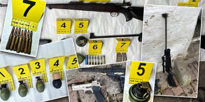 U iznamljenoj garaži pronađen je jedan ručni raketni bacač, dve tromblonske mine, eksploziv, šest detonadorskih kapisli, sedam ručnih bombi, osam automatskih pušaka sa 14 okvira, jedan pištolj, kao i 2.734 komada municije različitog kalibra.