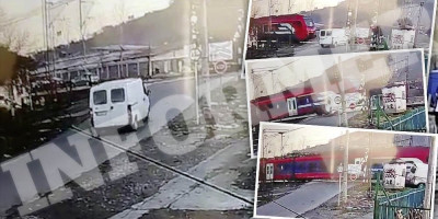 Na snimku koji traje desetak sekundi vidi se beli kombi kako zaobilazi spuštene rampe na pružnom prelazu.