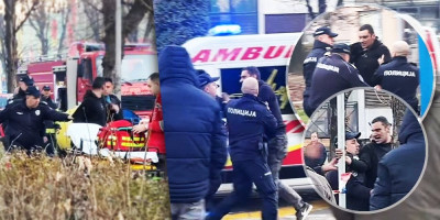 Drama ispred zapaljene zgrade u Čačku! Muškarac se sukobio sa policijom zbog požara (VIDEO)