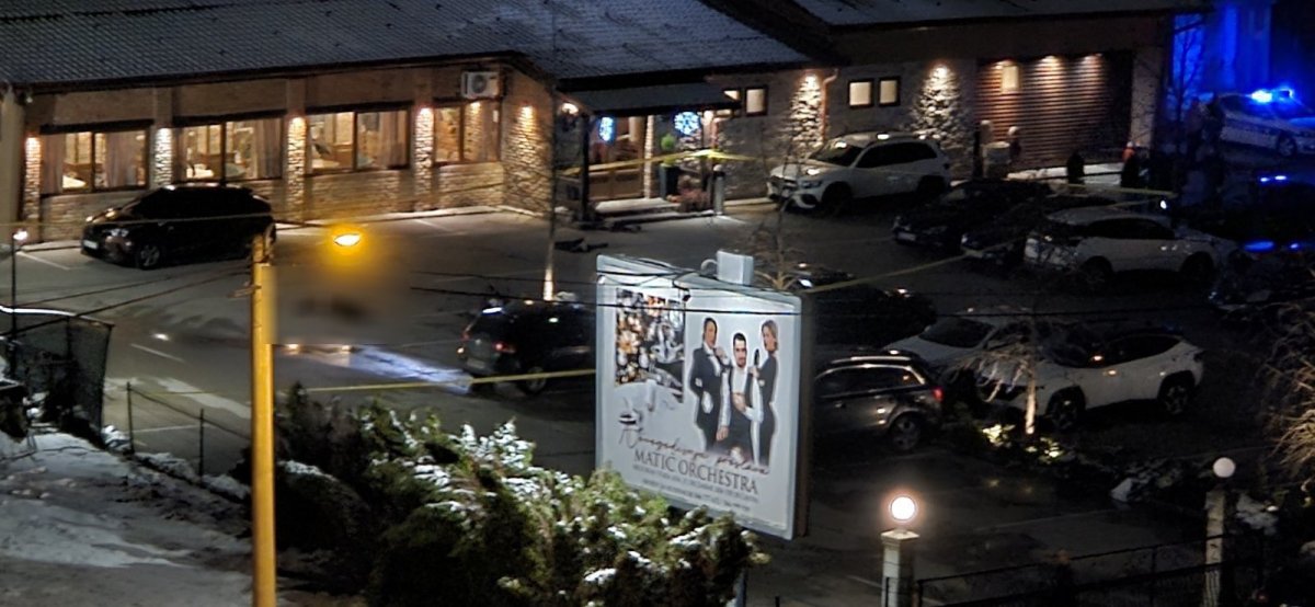 Telo Dejana kostića Dela vođe navijača Borca koji je večerac ubijen u Banjaluci i dalje leži ispred resotrana gde je on usmrćen.