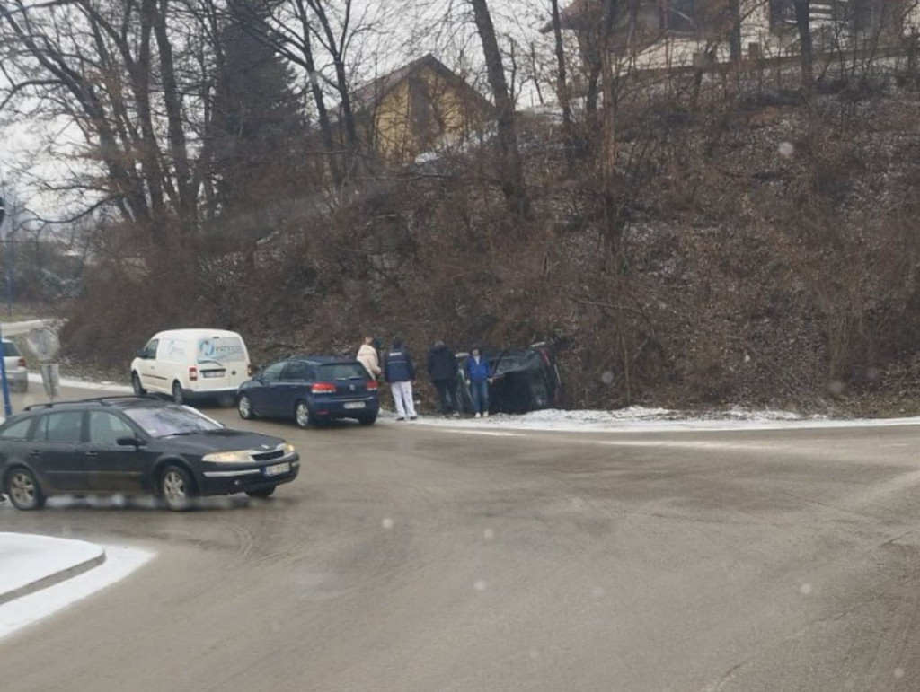 Na jednoj od ulica u Arilju, usled klizavog kolovoza, došlo je do proklizavanja jednog automobila koji se prevrnuo u kanal, a tokom noći vozačima preti još veća opasnost na putu - poledica.