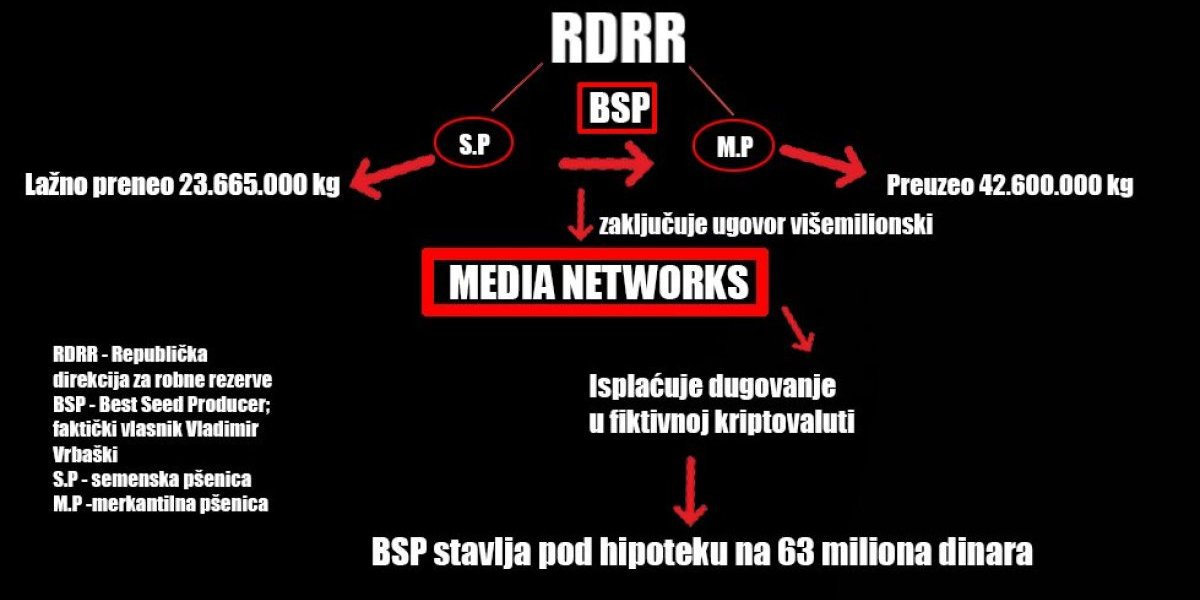 On je, kako se sumnja, u ugovorima u tom periodu lažno prikazivao da im je preneo u vlasništvo ukupno 23.665.000 kilograma semenske pšenice dostavljanjem fiktivne dokumentacije i to deklaracija o kvalitetu semena poljoprivrednog bilja i izveštaja o ispitivanju semena poljoprivrednog bilja, a sve to kako bi “BSP” ispunilo pomenute ugovorne obaveze i preuzelo merkantilnu pšenicu u razmeri 1:1.8 od RDRR u ukupnoj količini od 42.600.000 kilograma merkantilne pšenice.