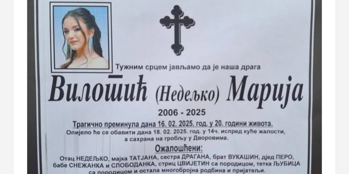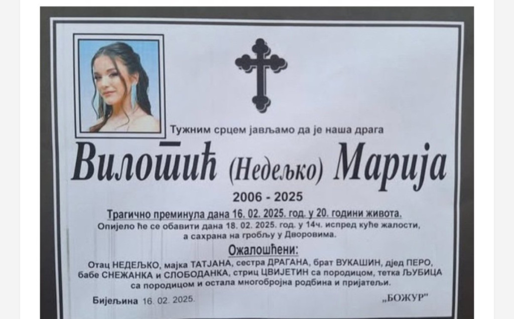 - Marija ima sestru i brata i veliku rodbinu. Opelo ći biti održano oko 14 sati a potom i sahrana u njenom rodnom mestu - rekao je sagovornik.