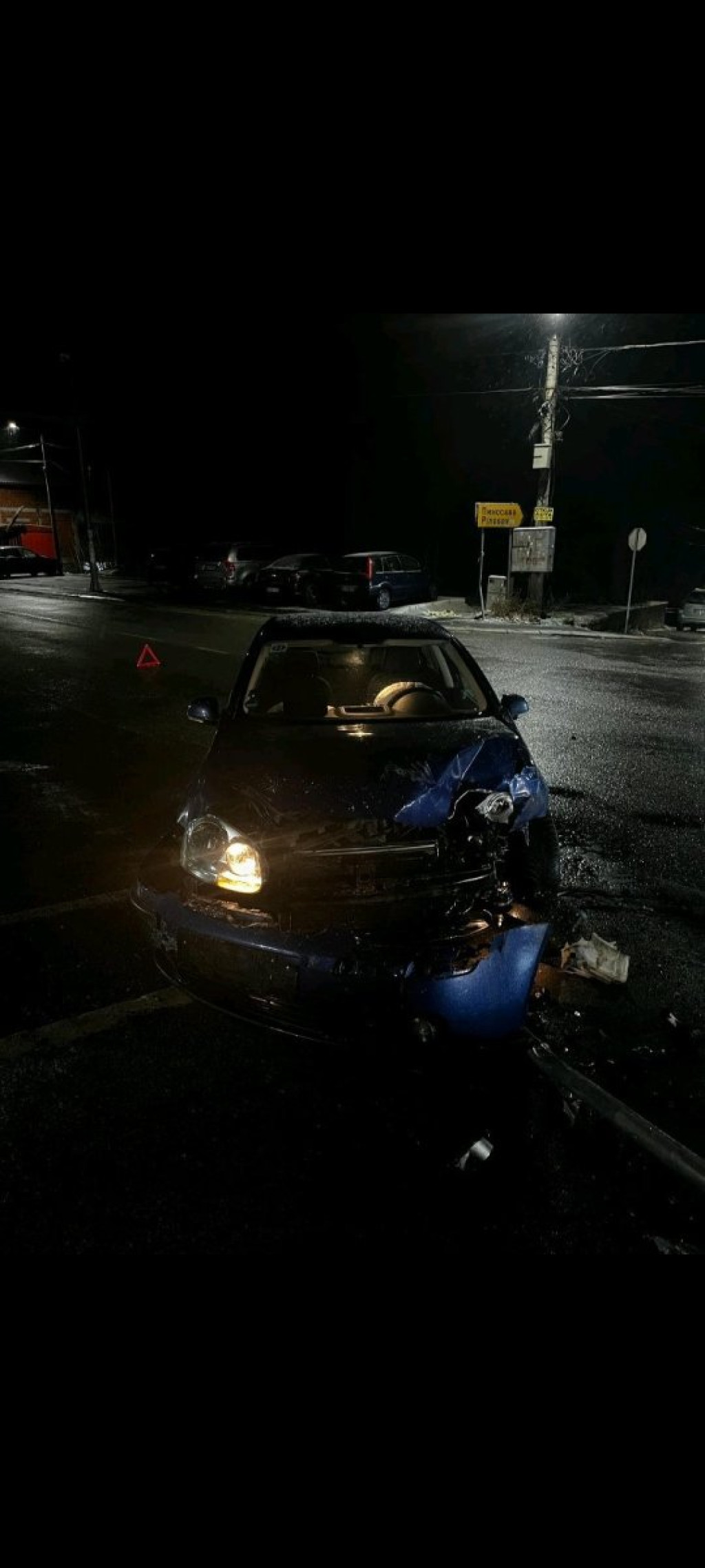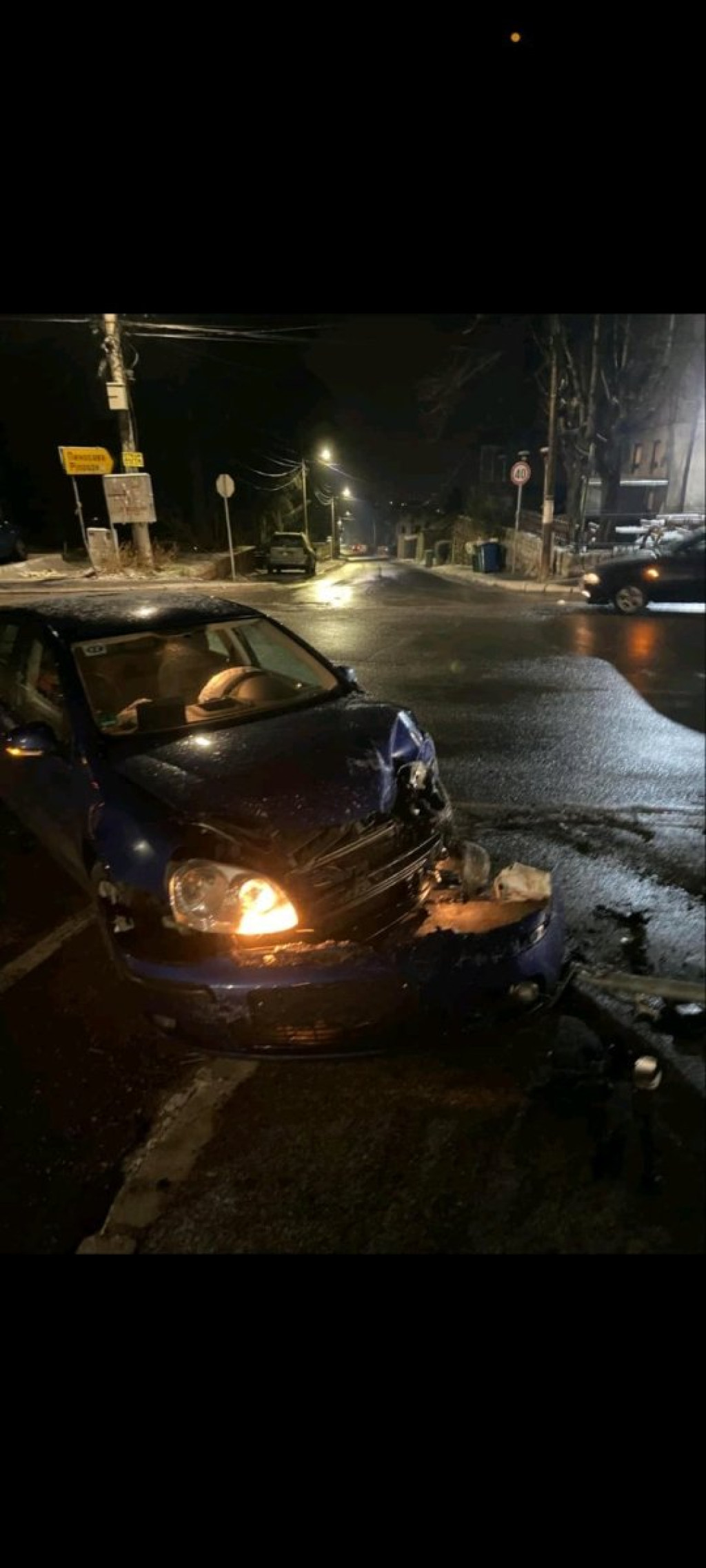 Od siline udara, oni su završili na razdelnom ostrvu nasred puta.
