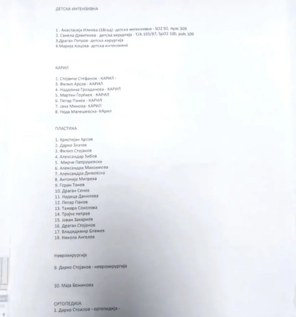 Prema zdravstvenim vlastima, još osamnaest osoba je na lečenju na Klinici za plastičnu hirurgiju u Skoplju, osam ih je na Klinici KARIL, četiri su na Dečjoj intenzivnoj nezi, dvoje na Klinici za neurohirurgiju, a jedan povređeni je takođe na Klinici za neurohirurgiju. Veliki broj povređenih u požaru prebačen je i u bolnice u Štipu i Kočanima, kao i u nekoliko drugih zdravstvenih ustanova u Skoplju, prenosi Telegraf.rs.