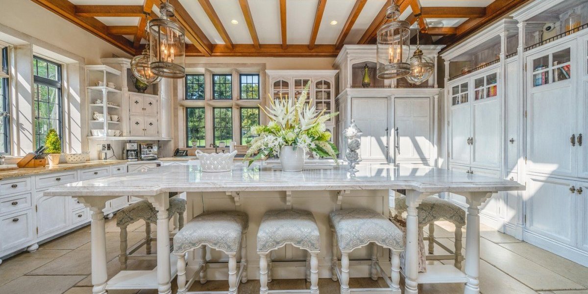 Kuća u stilu Tjudora iz 1929. godine, poznata kao Orčards End, nalazi se na oko sat i dvadeset minuta od Menhetna na skoro 2,5 hektara zemlje i trenutno je na tržištu za 12,4 miliona dolara.