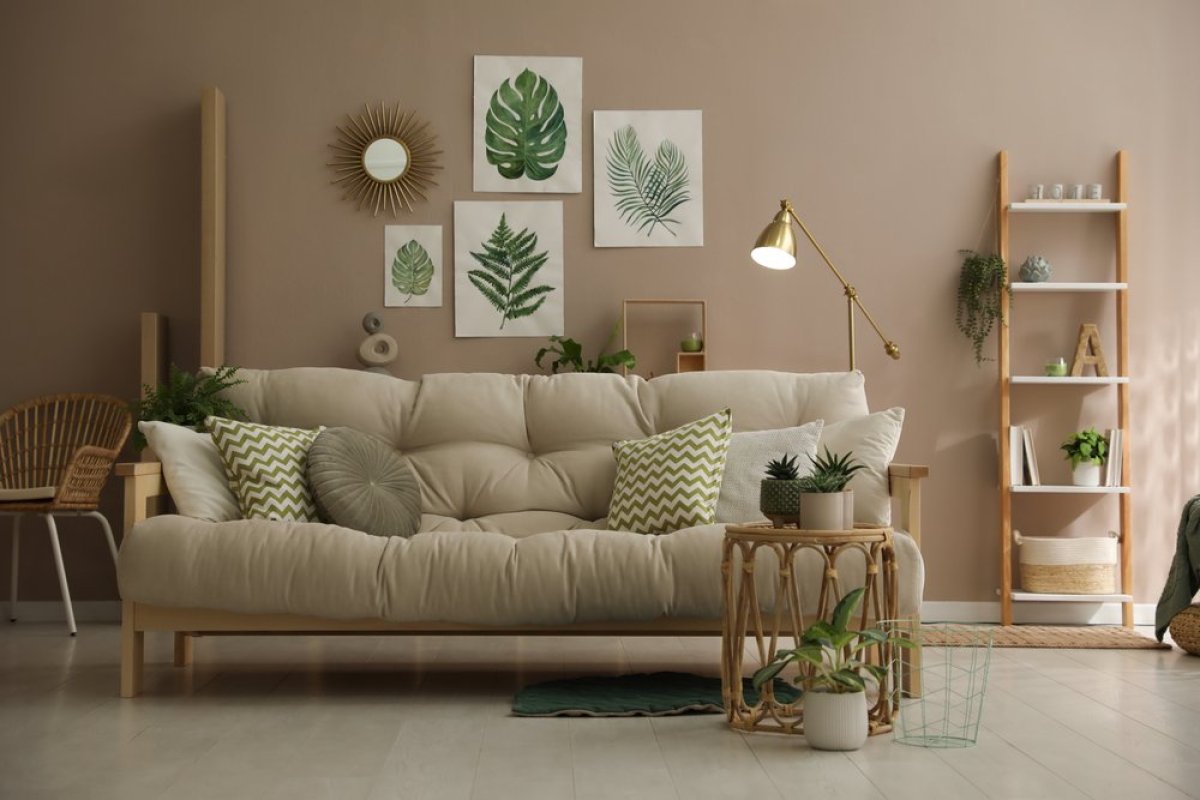 Opšte pravilo koje koriste dizajneri je da zidna dekoracija iznad sofe treba da zauzima oko dve trećine širine sofe.