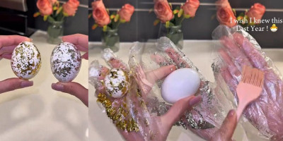 Ova tehnika je poznata još od ranije u umetnosti pozlate i omogućava da se ukrasi nanesu bez upotrebe veštačkih sredstava, što je idealno ako planirate da jaja kasnije jedete.