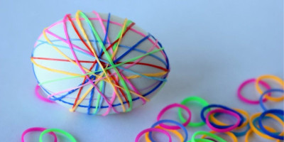 Uzmite bela jaja i gumice različitih veličina. Postavite gumice oko jajeta prema željenom dizajnu.