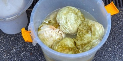 Ove kese bi trebalo da se probuše, kako bi cirkulisala slana voda. Njih je potrebno ugurati između glavica kupusa i njima popuniti prostor. Na taj način dobićete iz istog bureta i kupus ribanac.