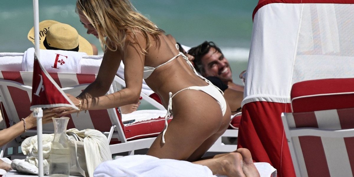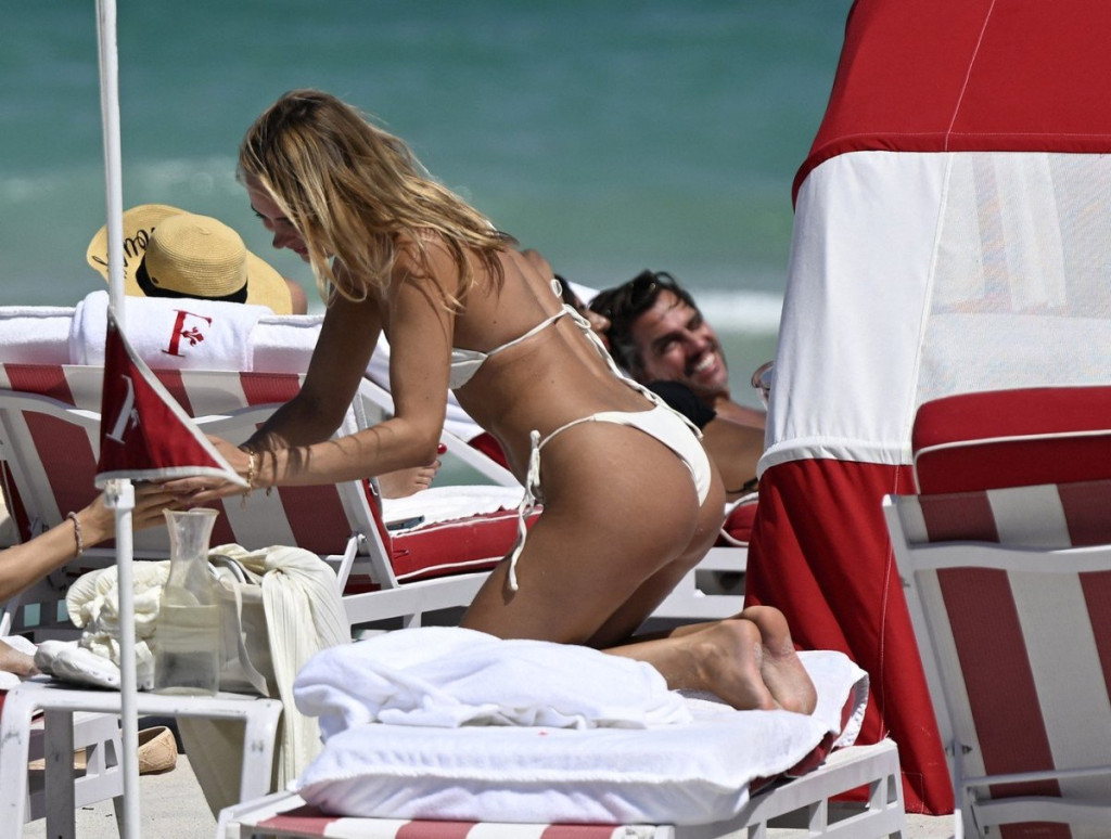 Engleska TV zvezda Kimberli Garner pokazala je savršeno telo u belom bikiniju na plaži u Majami Biču na Floridi.