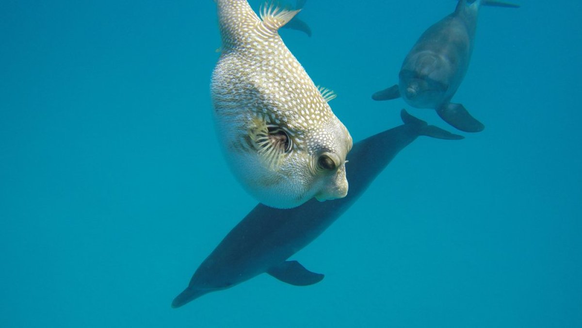 Ali, umesto predatora i plena, vidimo neobičan ritual: delfini nežno stimulišu fugu da ispusti malu dozu toksina, a zatim je, poput nekog mitskog predmeta, prosleđuju jedni drugima.