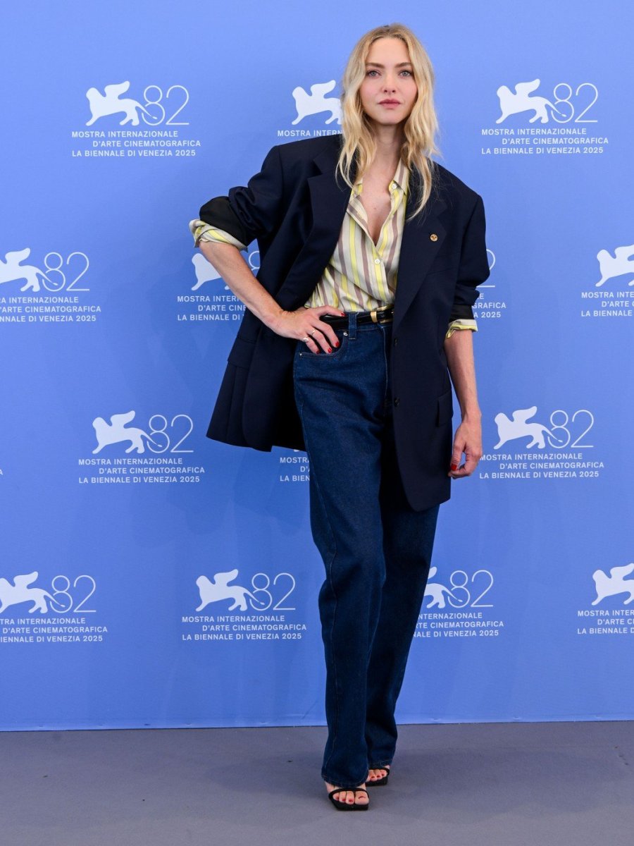 Umesto u klasičnim, raskošnim haljinama, glumice su se odlučile za neočekivani modni duel. Nosile su isti luksuzni model kuće Versaće, koji je dizajnirao novi kreativni direktor Dario Vitale u saradnji sa njihovom stilistkinjom Elizabet Stjuart. Kombinacija je bila sastavljena od ležernih, širokih farmerki visokog struka, klasične košulje na pruge i elegantnog teget sakoa sa predimenzioniranim ramenima. Iako su u pitanju bile gotovo iste stvari, glumice su ih nosile na različite načine.