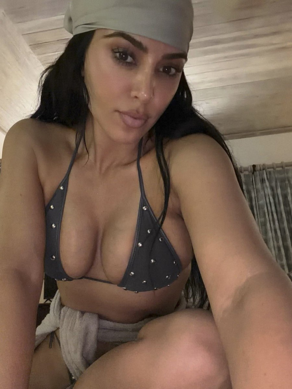 Osnivačica brenda Skims učinila je svoj bikini momenat još glamuroznijim šminkom - senkama, popunjenim obrvama, dugim trepavicama, crnim ajlajnerom i iscrtanim usnama. Kosa joj je bila stilizovana u talasima nalik onima sa plaže.