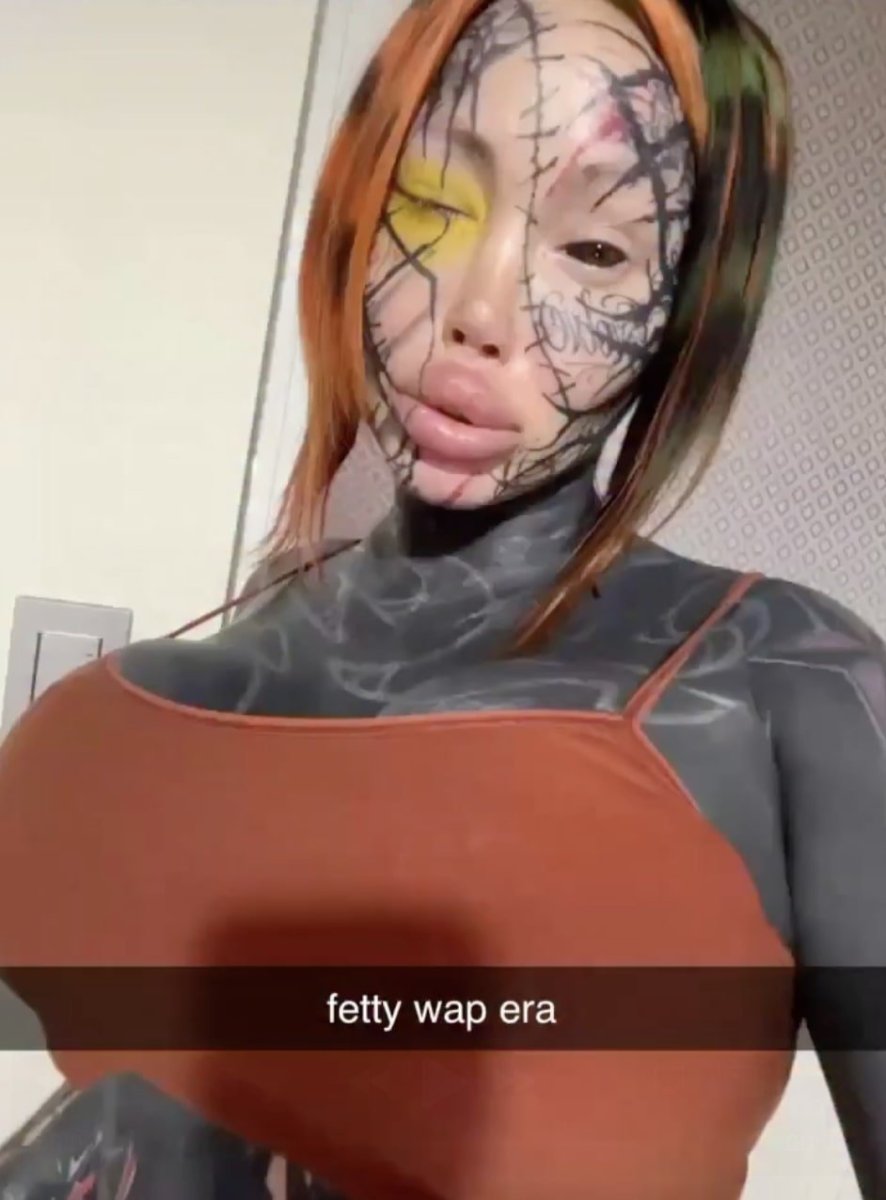 Dodatnu kontroverzu izazvala je odlukom da istetovira očnu jabučicu upadljivom neon-zelenom bojom. Umesto željenog efekta, višak mastila je počeo da curi i skuplja se, obojivši kožu oko oka u žuto. Ona i dalje ima posledice ove greške, što je vidljivo i na njenim novijim video snimcima.