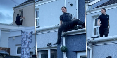 Neobičan prizor zabeležio je komšija iz obližnje zgrade, koji je celu situaciju snimio kamerom i uz video ostavio komentar u šaljivom tonu, nagoveštavajući da se "komšiničin muž možda vratio kući" u nezgodnom trenutku.