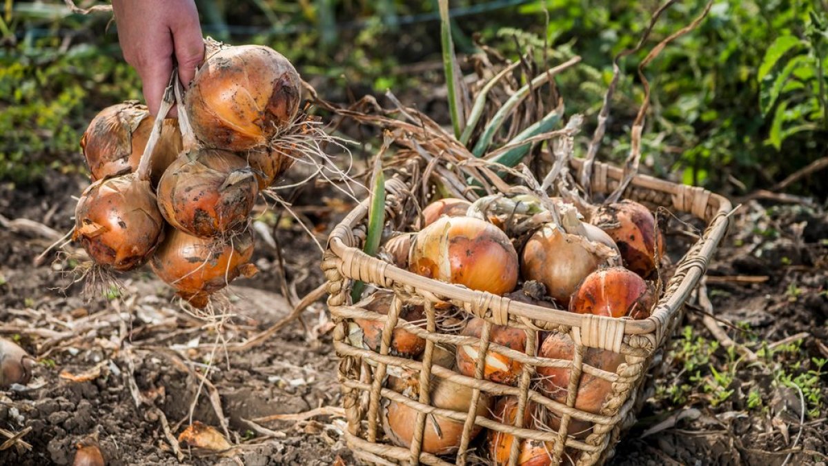 Pokrijte tankim slojem zemlje (oko 2 cm). Položite krompir ili luk preko zemlje.