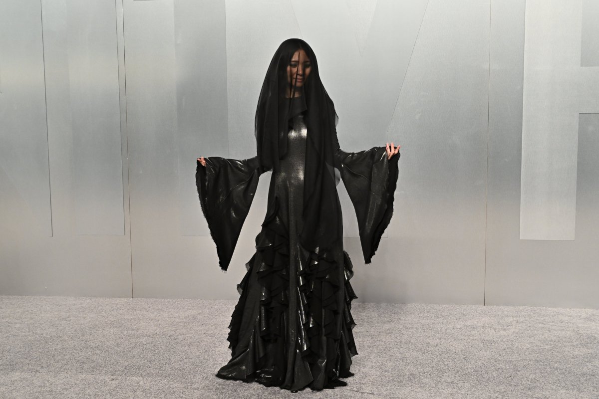 Poput kakve modne "crne udovice" ili protagonistkinje iz filmova strave, rediteljka je gledala kroz prozirnu tkaninu, ostavljajući prisutne da se pitaju, šta se to dešava u njenom svetu?