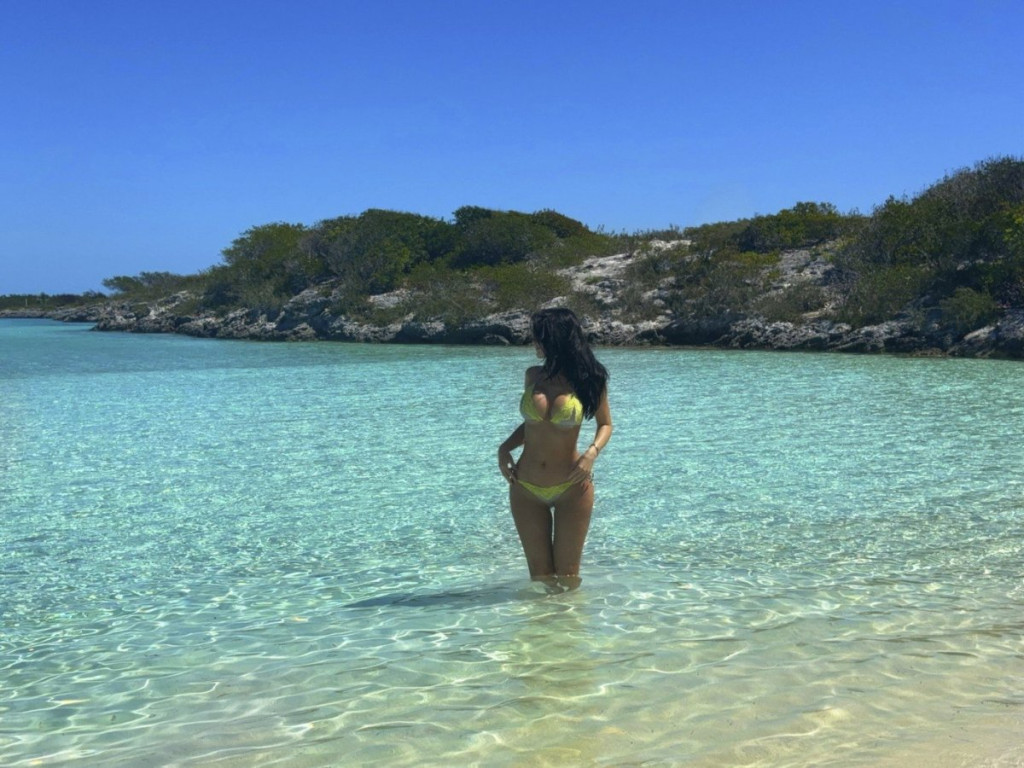 Na fotkama je pozirala u neon zelenom bikiniju, koji je savršeno naglasio njene obline. Na jednoj od fotografija, uhvaćena je sa zatvorenim očima, široko se smešeći i naginjući glavu unazad. Ovaj tropski odmor izgleda kao zaslužena pauza od poslovnog carstva zvezde i njenog užurbanog rasporeda roditeljskih obaveza.