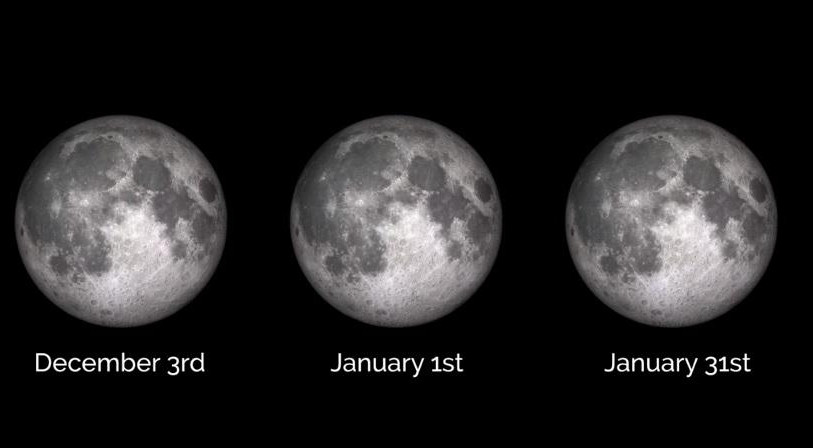 U zavisnosti od toga odakle posmatrate ovu pojavu ona će se desiti tokom 31. januara ili 1. februara. Neki su ovu pojavu nazvali i Super Plavi Krvavi Mesec. Tokom Plavog Meseca, Mesec baš i nije plave boje. To pre označava da je to drugi pun Mesec koji se javlja tokom jednog meseca. Tada Mesec menja boju, ali ona baš i nije plava.