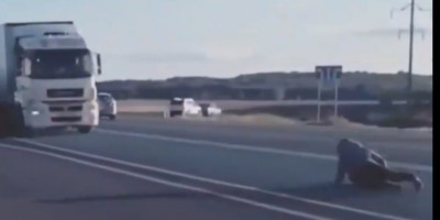 I to mu nije bilo dovoljno, već je po prolasku prvog kamiona uspeo da se otkotrlja ispred sledećeg, izbegavši sigurnu smrt za dlaku.
