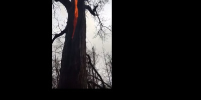 Korisnik Twittera iz Atlante, koji se krije iza imena So fain objavio je snimak drveta koje gori iznutra, a tvrdi da je neverovatni snimak rezultat udara groma koji je raspolutio drvo.