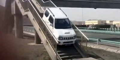 Suzuki Jimny se smatra "best buy" modelom za one kojima je potrebno malo, okretno terensko vozilo, po pristupačnoj ceni. Ipak, retko kome bi palo na pamet da ga preveze preko pešačke pasarele iznad auto-puta. Vozač iz Kine je pokazao da je i to moguće