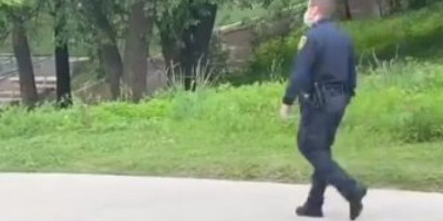 Na njemu se vidi kako jedan policajac ide praznom ulicom a za njim maršira kolona pačića! Maleni su se odvojili od majke i nisu umeli da nađu put do parka, pa im je ljubazni policajac poslužio kao vodič.